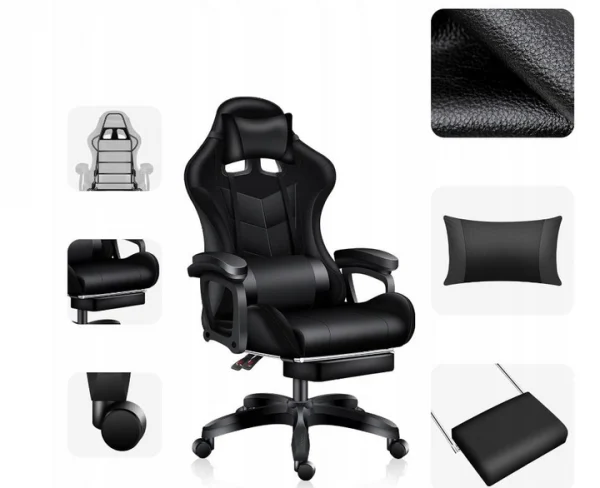 Геймерське крісло Atom 26 L екошкіра чорна-Комфорт і стиль для тривалих ігрових сесій та роботи