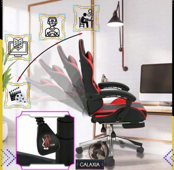 3,938 грнГеймерське Крісло з підставкою для ніг GALAXIA чорний+червоний -Стильний Дизайн