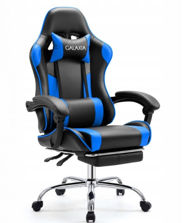 3,977 грнГеймерське Крісло з підставкою для ніг GALAXIA чорний+синій -Комфорт та Стиль