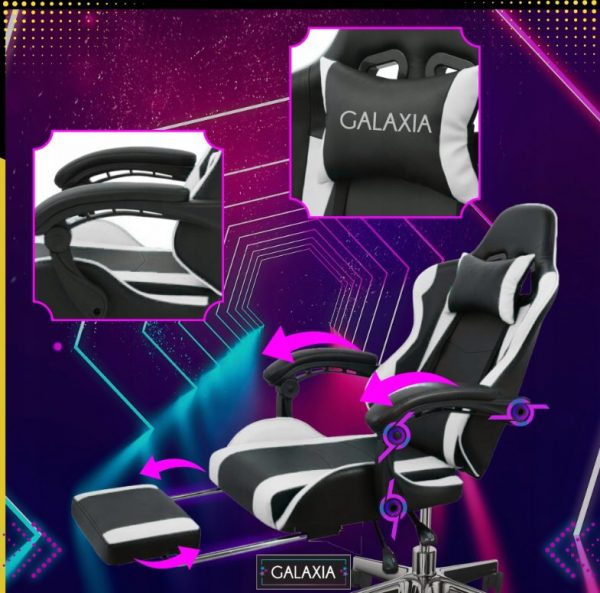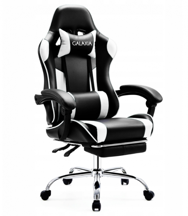 3,938 грнГеймерське Крісло підставкою для ніг GALAXIA чорний+білий-Стиль та Максимальний Комфорт