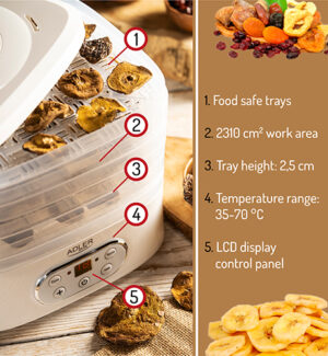 Харчовий дегідратор Adler AD 6658 – Дегідратор для приготування сушених страв та закусок від Adler