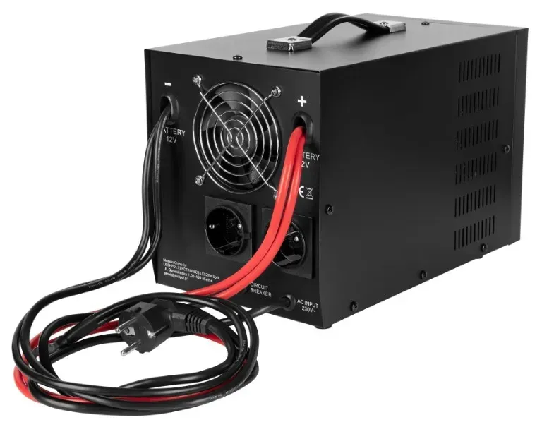 - Режим інвертора — перетворення 12 В від акумулятора у 230 В змінного струму