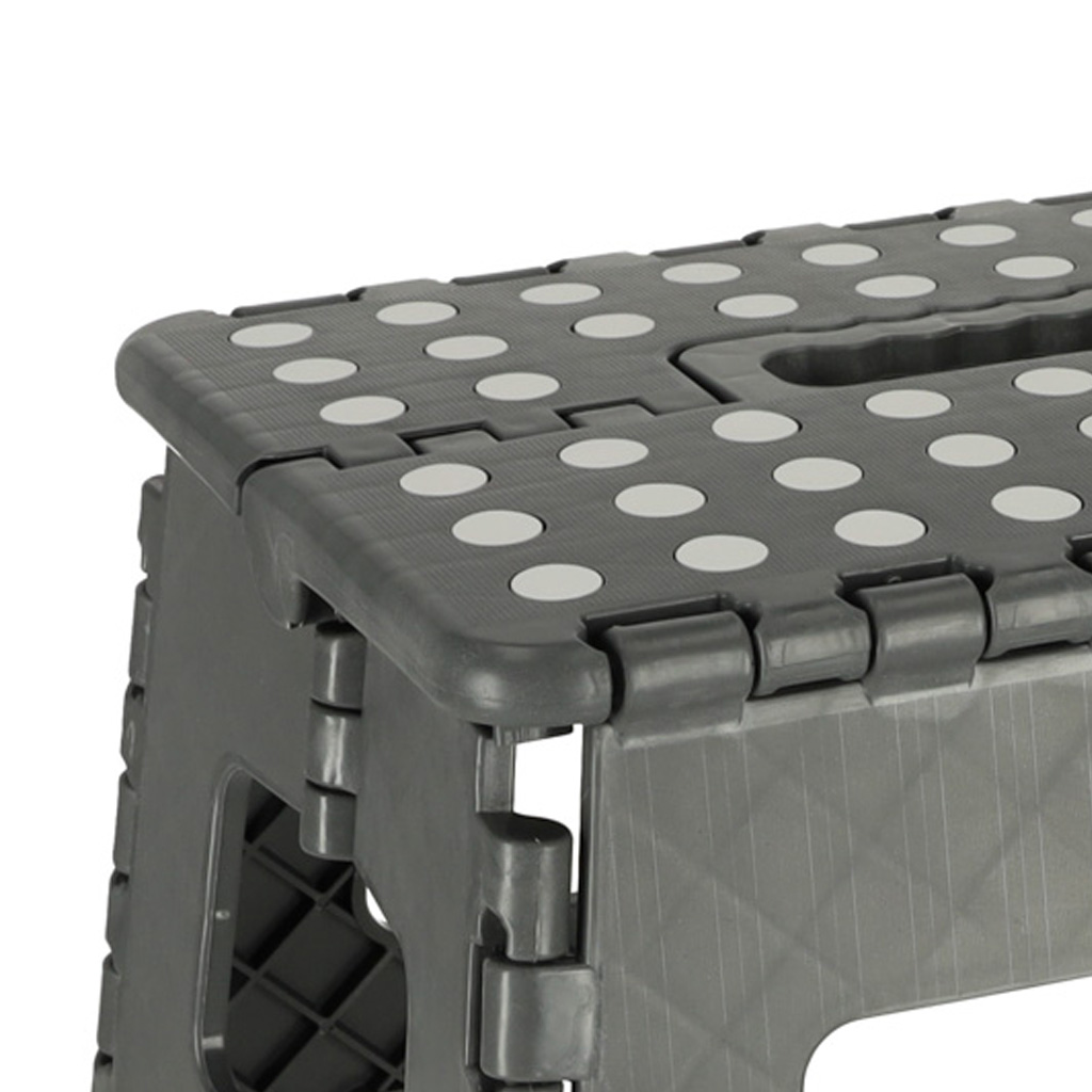 Складаний стілець Ikonka KX4404_1 39.5 см GRAY — компактний та міцний пластиковий табурет для дому, кухні або дачі. Завдяки складаній конструкції займає мінімум місця, легко переноситься та витримує навантаження до 150 кг. Нековзна поверхня забезпечує безпечне використання, а легка вага робить його зручним для щоденних задач.