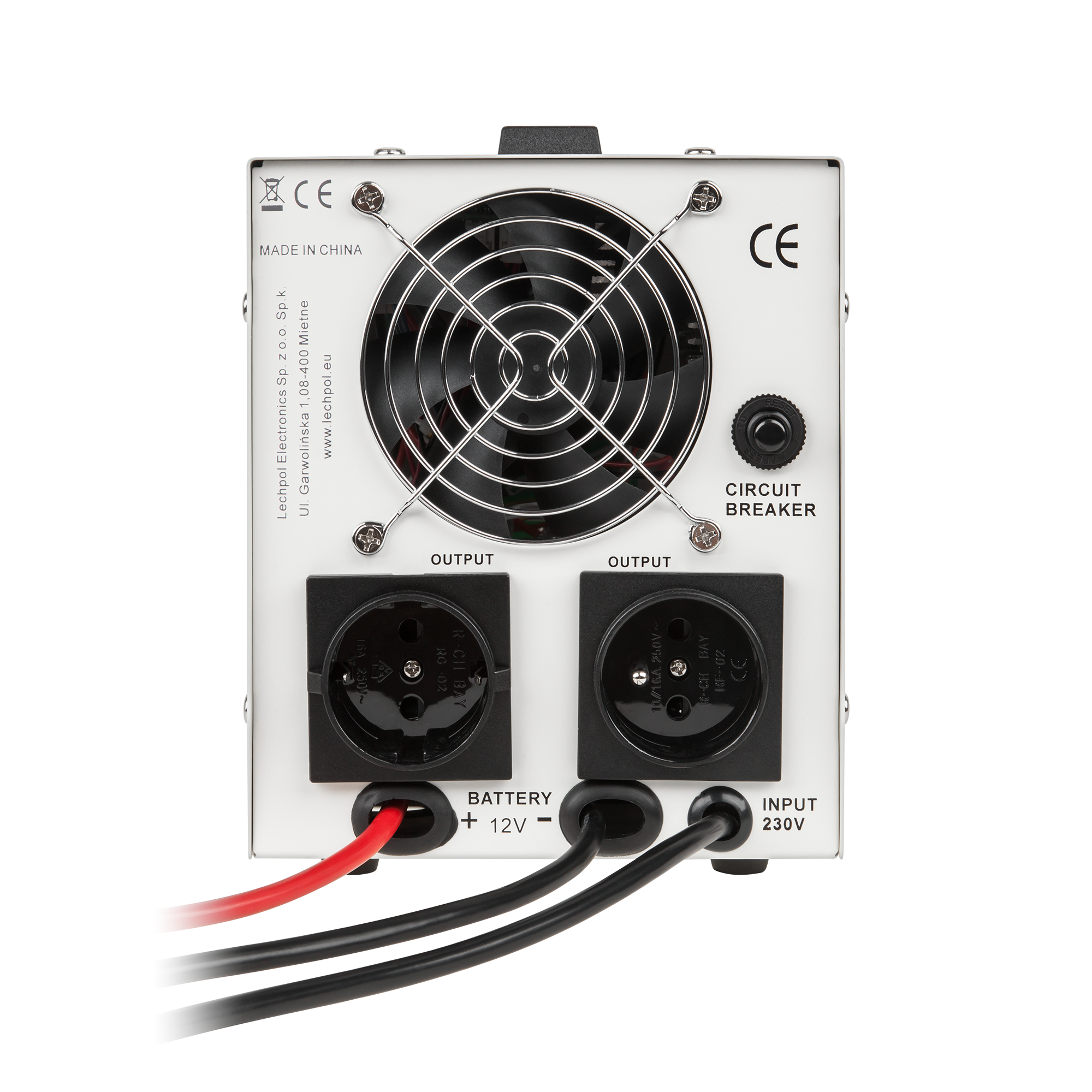 - Режим аварійного живлення — перетворення 12 В постійного струму з акумулятора в 230 В змінного струму з одночасною зарядкою батареї.