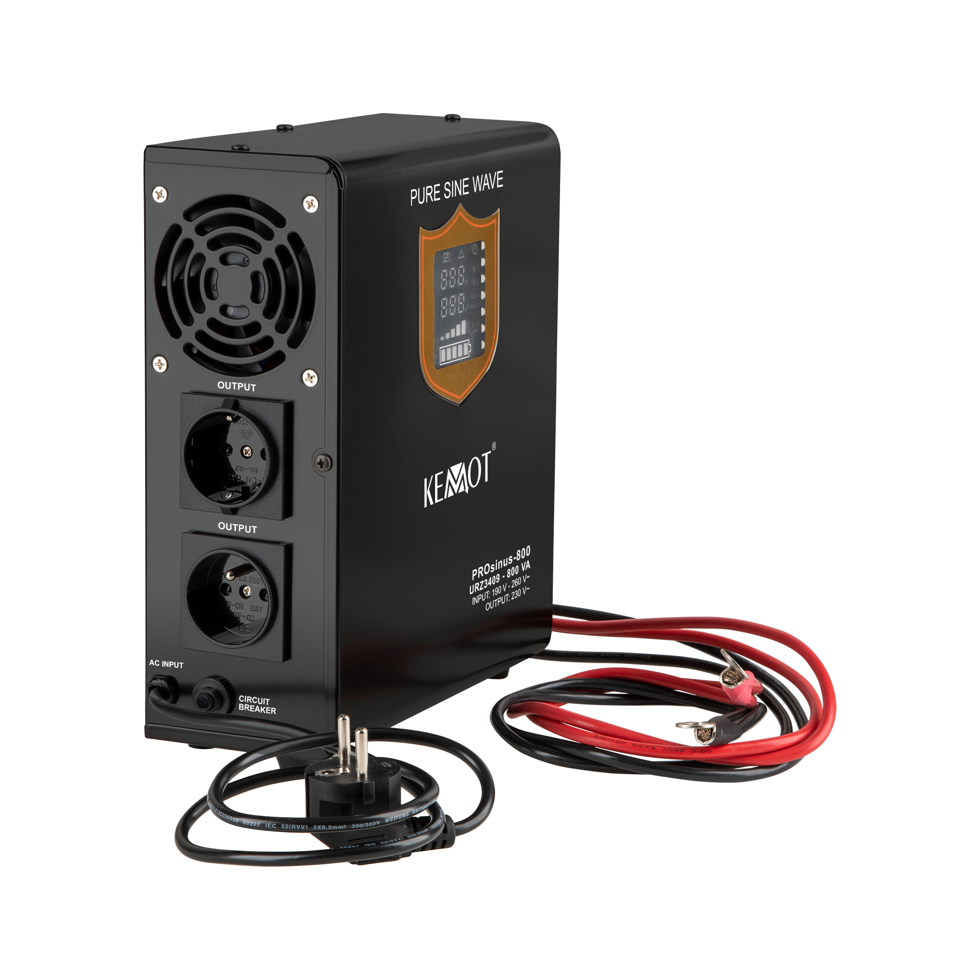 Завдяки чистій синусоїдальній формі вихідної напруги, ДБЖ Kemot PROsinus-800W забезпечує коректну роботу індуктивних та електронних пристроїв без ризику перегріву, шуму або пошкодження електроніки. Це критично важливо для насосів, асинхронних двигунів та автоматизованих систем опалення.