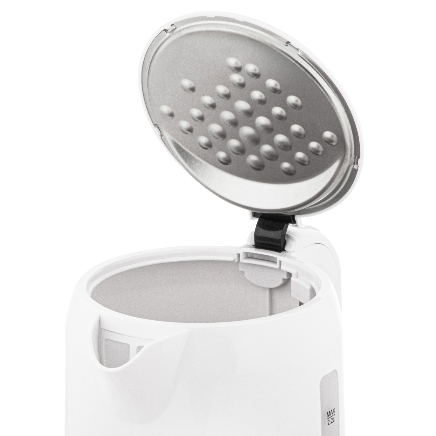 Електричний чайник 2,2 л Adler AD 1386 білий – практичний пластиковий пристрій для дому чи офісу з місткістю від 0,6 до 2,2 л. Швидке кип’ятіння завдяки плоскому нагрівальному елементу з нержавіючої сталі, автоматичне вимкнення та захист від сухого нагріву забезпечують безпеку. Зручний індикатор рівня води, фільтр від накипу та поворотна основа на 360° роблять його ідеальним для щоденного використання.