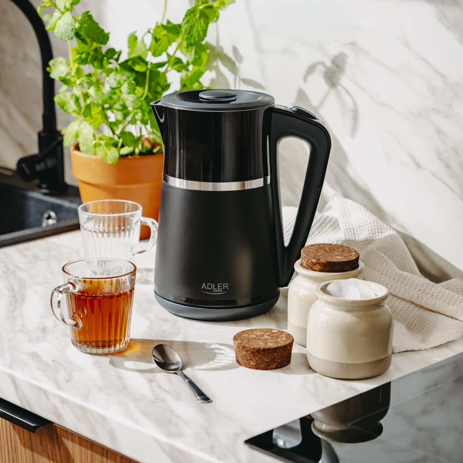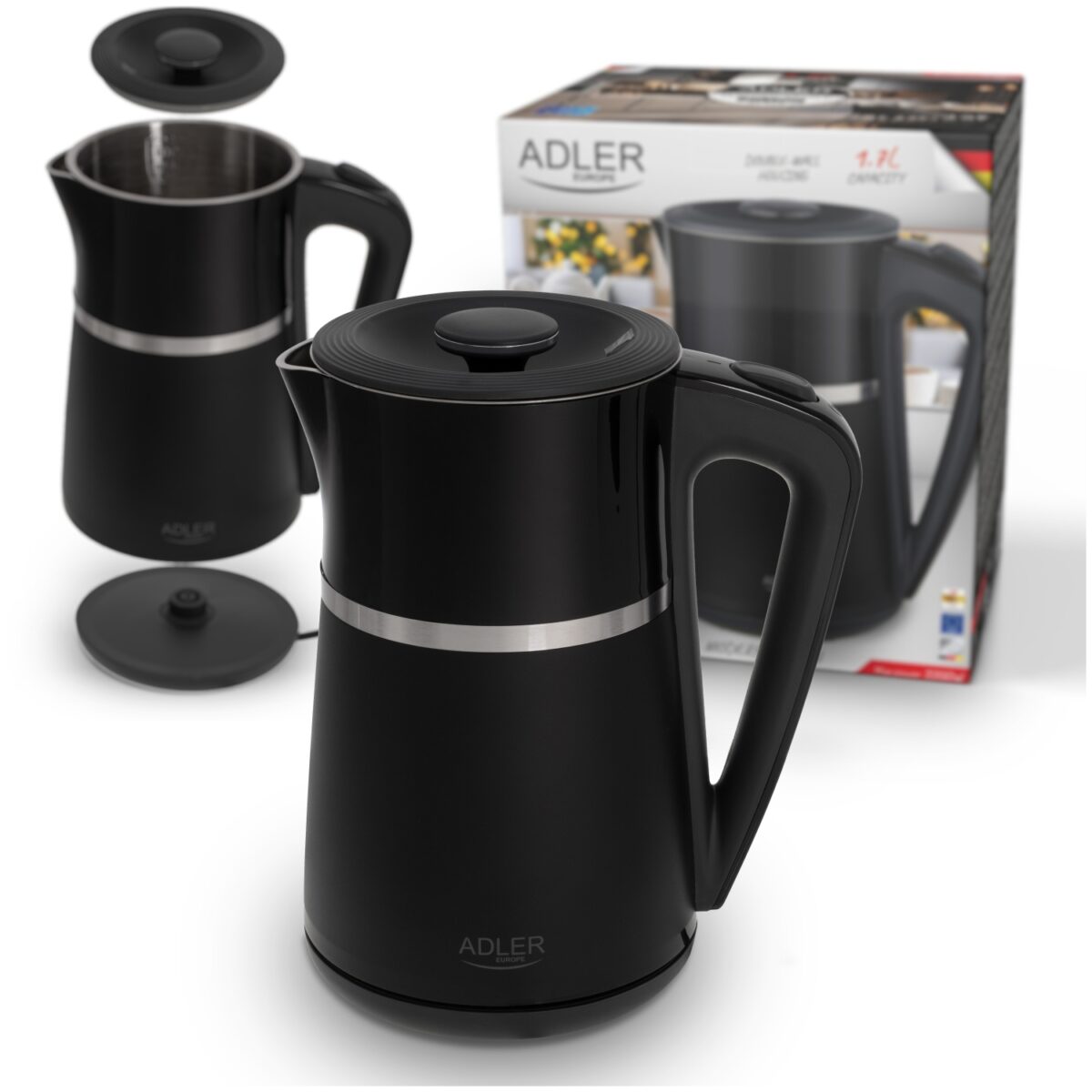 Електричний чайник Adler AD 1355 чорний з подвійними стінками 1,7 л