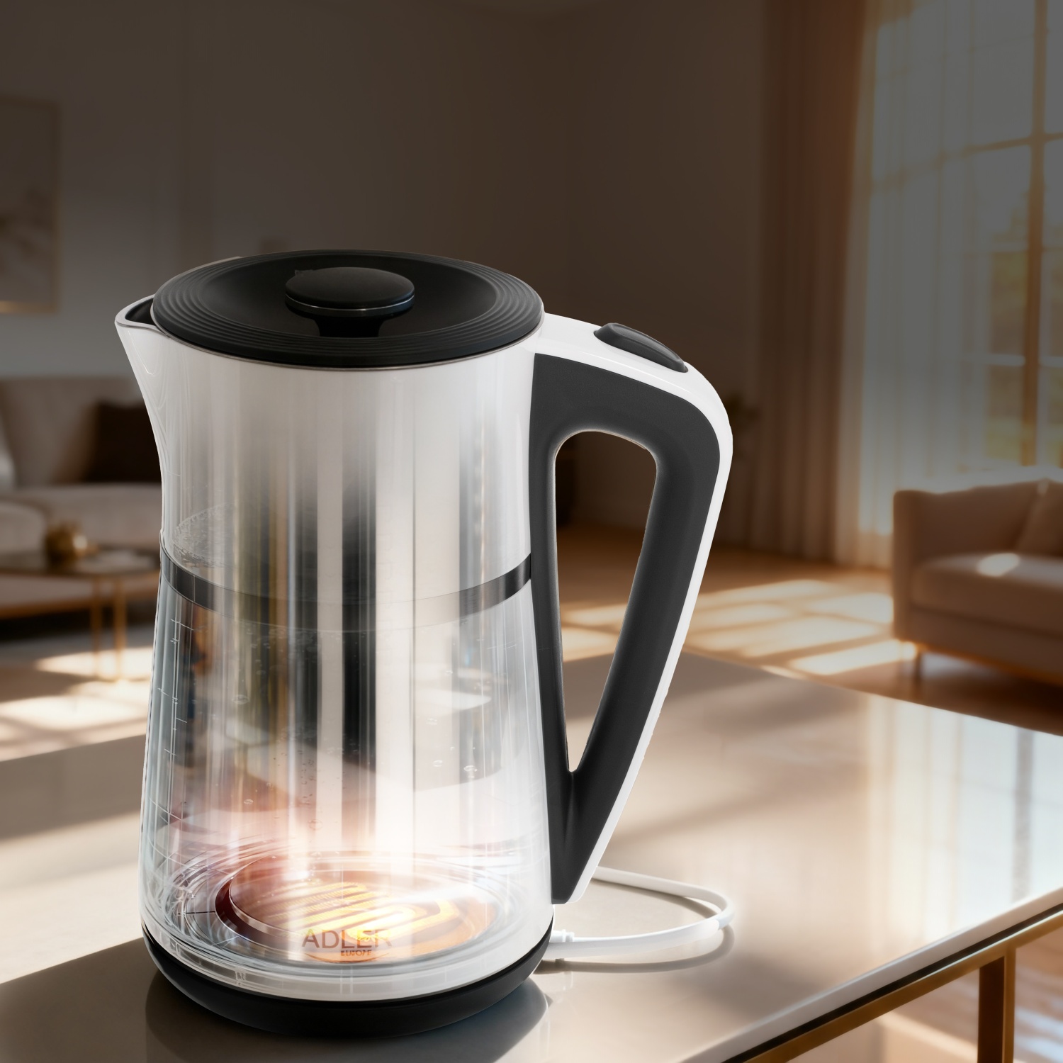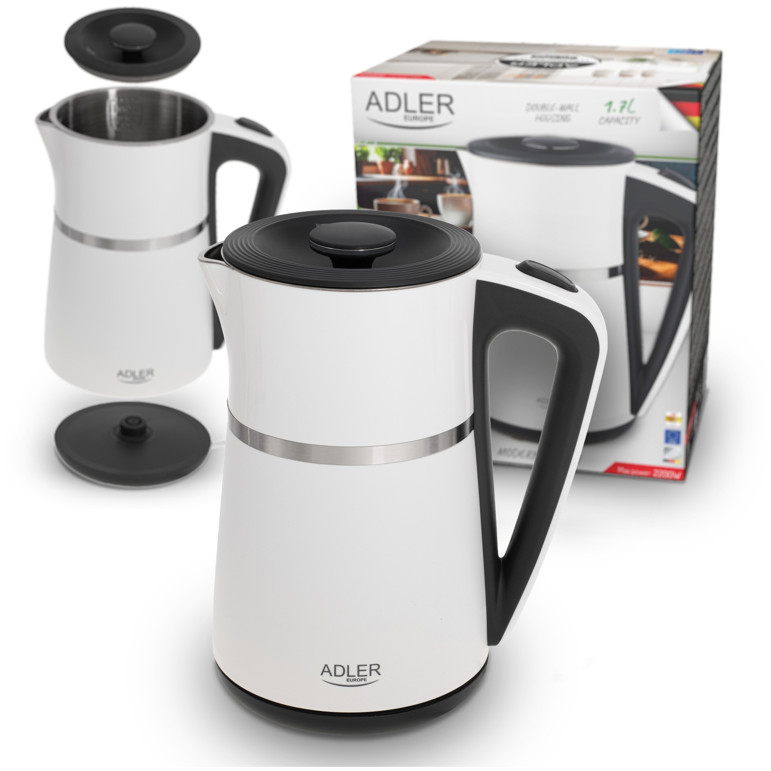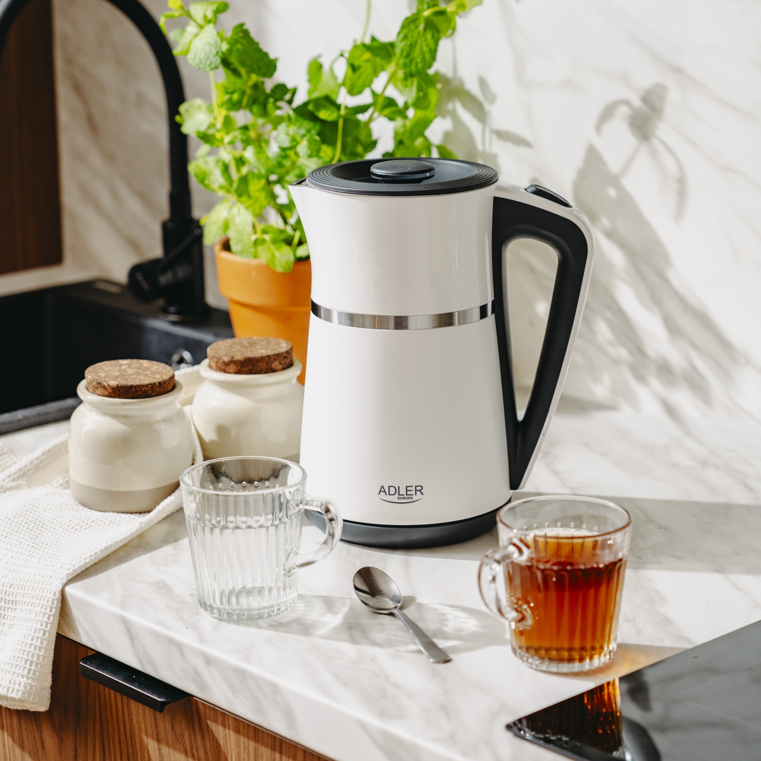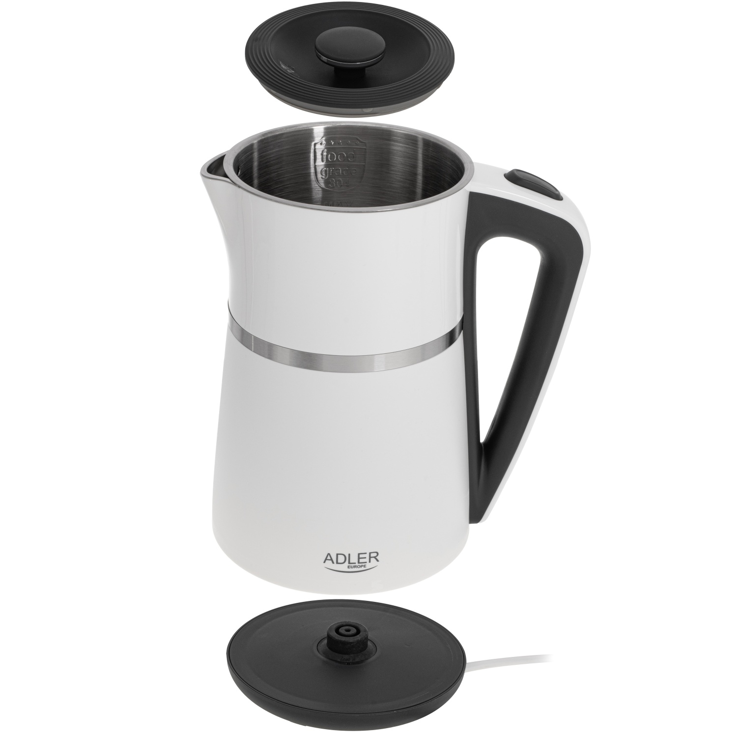 Електричний чайник 1,7 л | Внутрішня частина з нержавіючої сталі | Подвійні стінки AD 1355 білий Adler