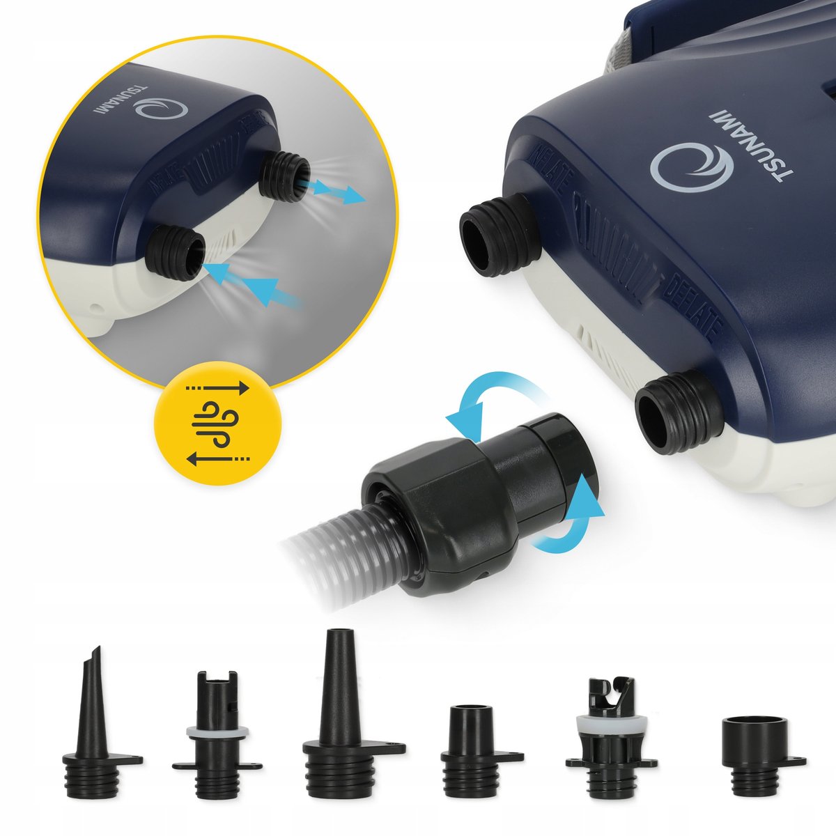 Завдяки набору змінних насадок, електричний насос TSUNAMI підходить не тільки для SUP-дощок: