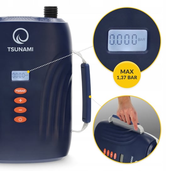 Електронасос для SUP TSUNAMI оснащений сучасною технологією Double Action, яка значно скорочує час накачування: