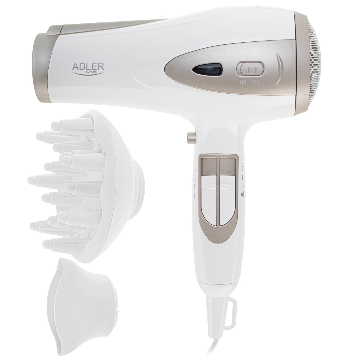 Фен 2200 Вт іонний з дифузором AD 2248 білий шампанське Adler