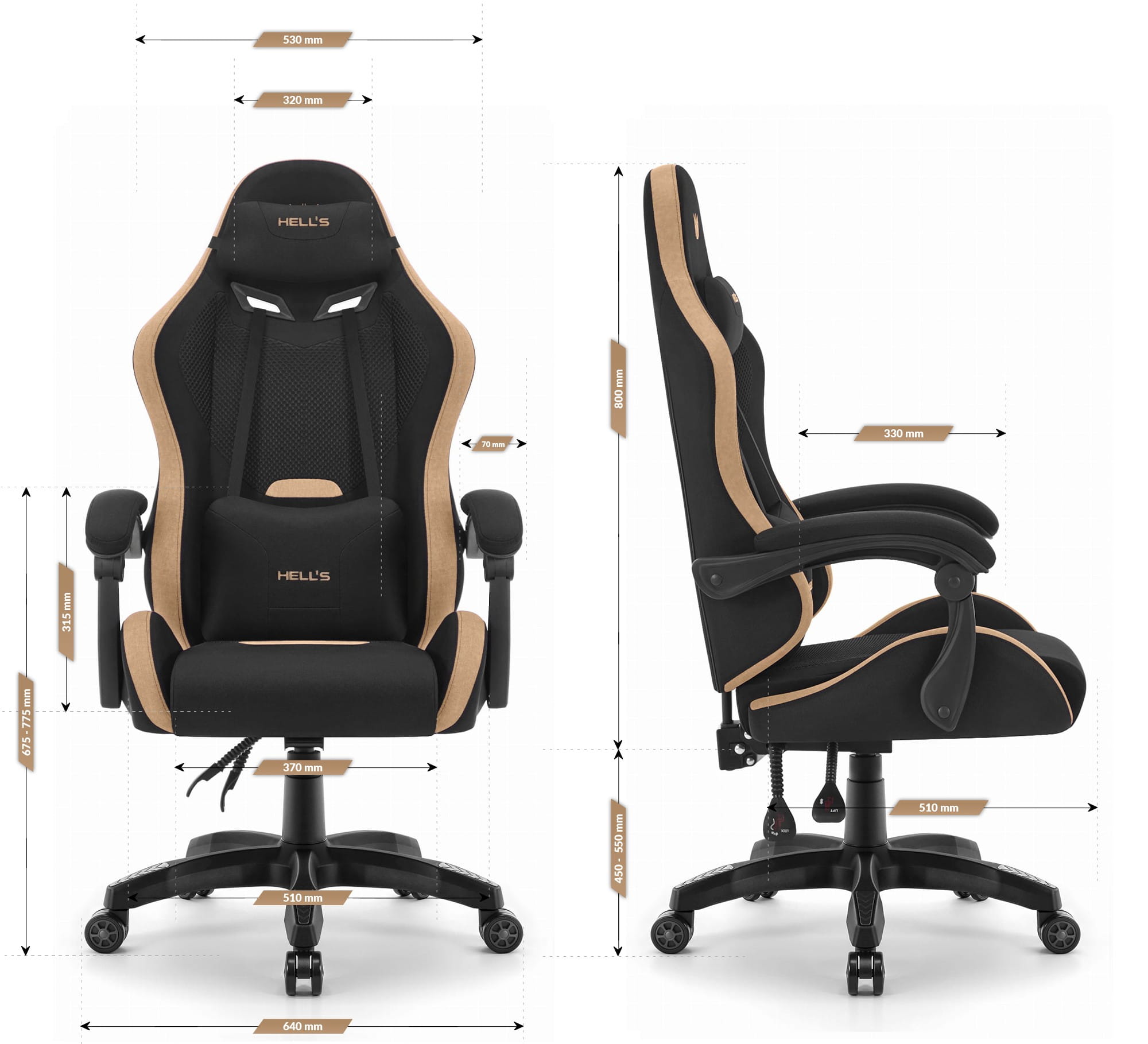 Геймерське ігрове комп’ютерне крісло Hell’s Chair HC-1012 Black Biege тканина/замша