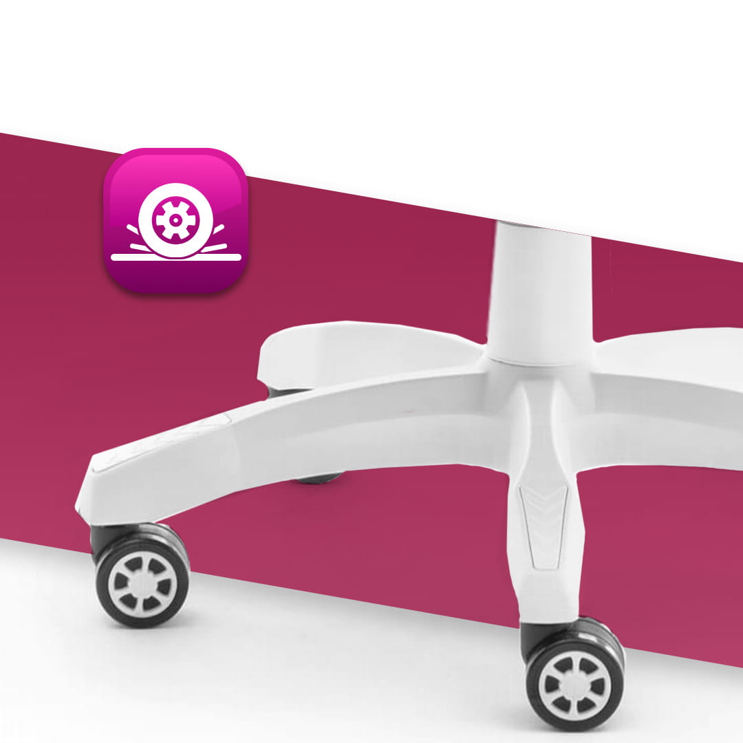 Поліуретанові колеса 60 мм не скриплять, не дряпають ламінат та паркет, легко котяться по килиму. Посилена нейлонова хрестовина витримує 150 кг і не тріскається навіть при інтенсивному використанні.