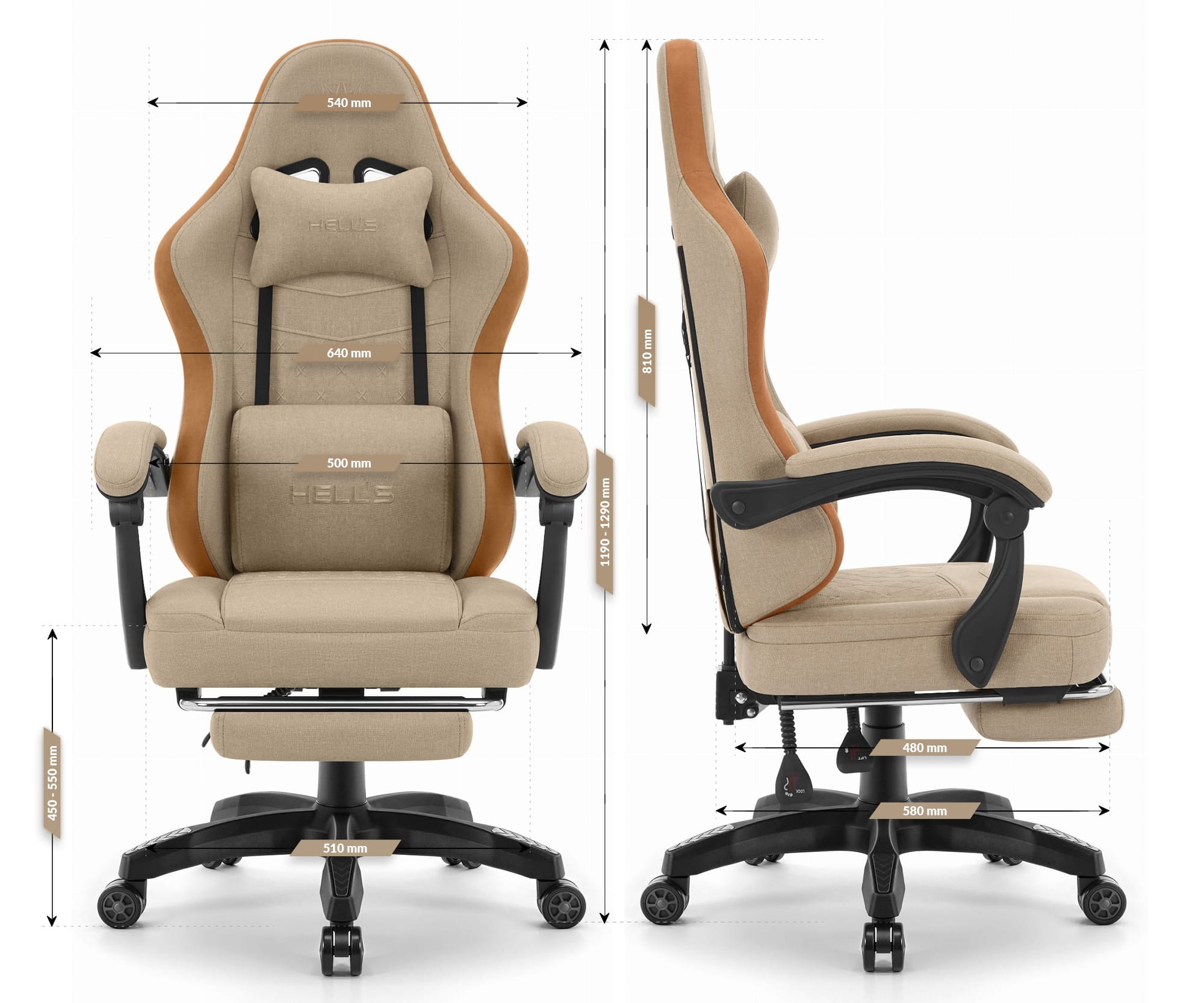 Технічні характеристики геймерського крісла Hell’s Chair HC-1015 Beige