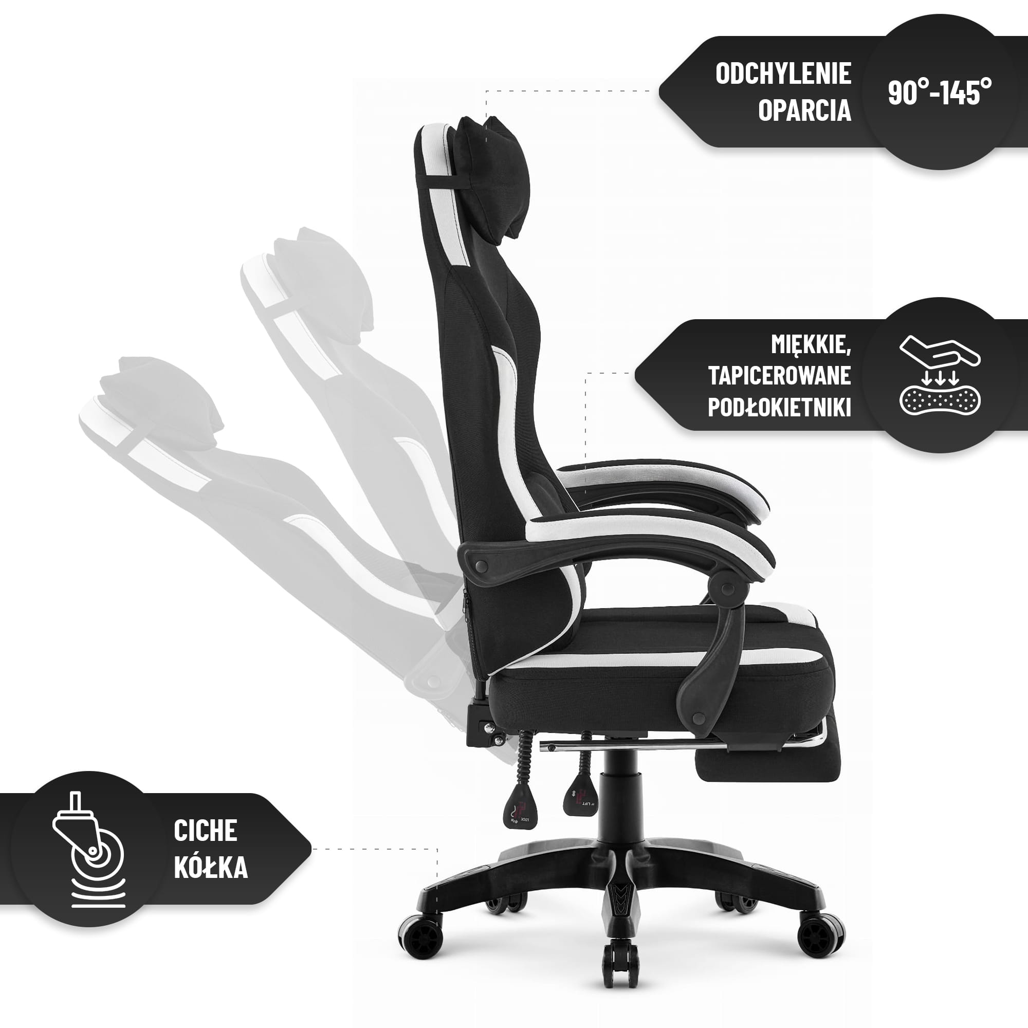 Стильне чорно-біле поєднання робить крісло доречним у будь-якому інтер’єрі: від геймерської кімнати до сучасного офісу.