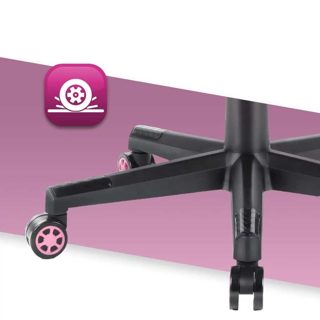 Міцна п’ятипроменева основа, сертифікований газліфт SGS та безшумні поліуретанові колеса гарантують надійність і довговічність. Оббивка з якісної екошкіри HDPL у стильному рожево-біло-сірому кольорі робить крісло ідеальним вибором для сучасного геймерського або робочого простору.