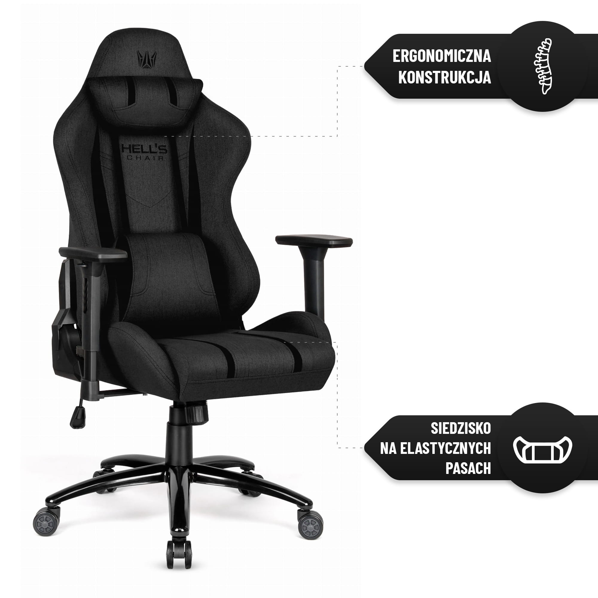 Геймерське крісло Hell’s Chair HC-1013 Black тканина — це ергономічне комп’ютерне крісло, створене для максимального комфорту під час тривалих ігрових сесій, роботи або навчання. Завдяки міцному сталевому каркасу, преміальній тканинній оббивці та еластичному сидінню з ремінною підтримкою, крісло забезпечує правильну підтримку спини та високий рівень зручності.