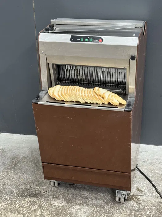 - Висока ефективність: Автоматична нарізка дозволяє обробляти великі обсяги хліба, економлячи час персоналу в пекарнях та магазинах.