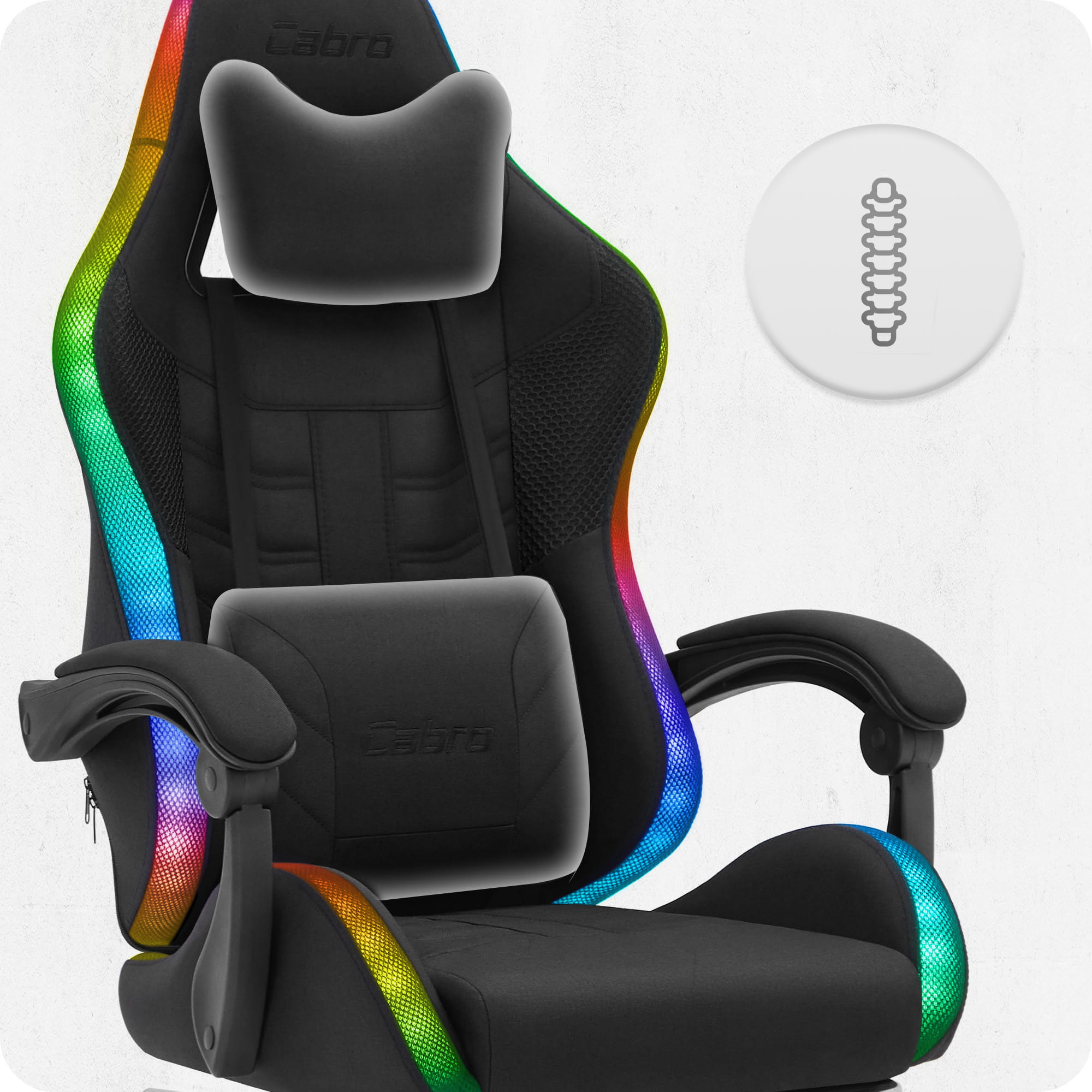 Ігрове геймерське комп’ютерне крісло Cabro C501 світлодіодне чорне-тканина