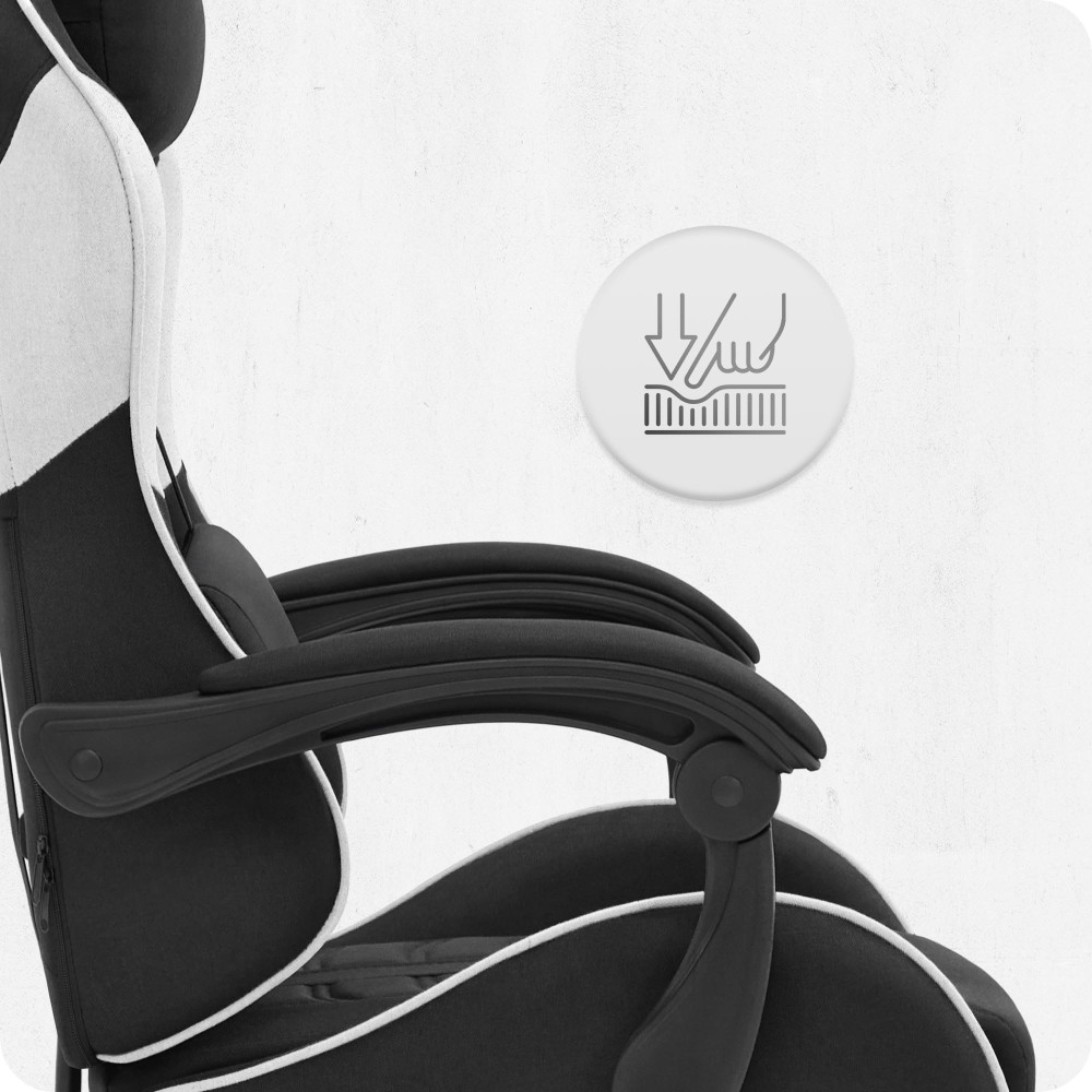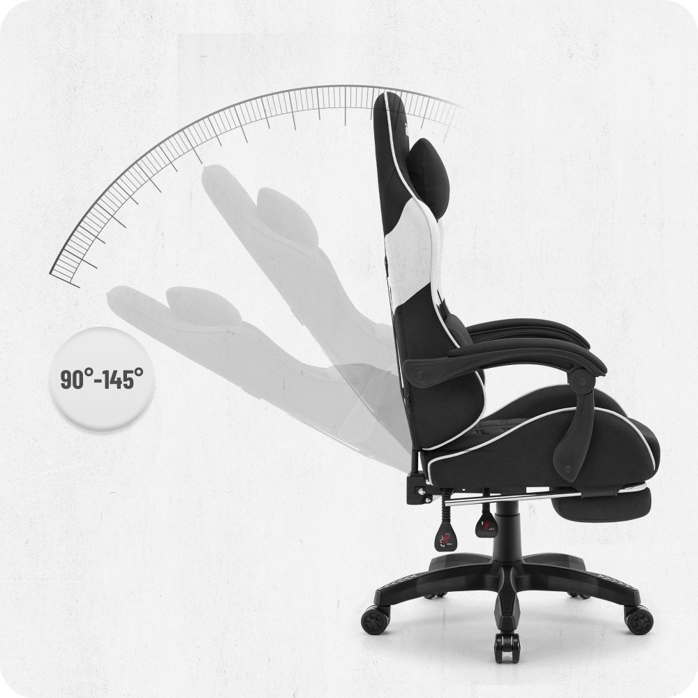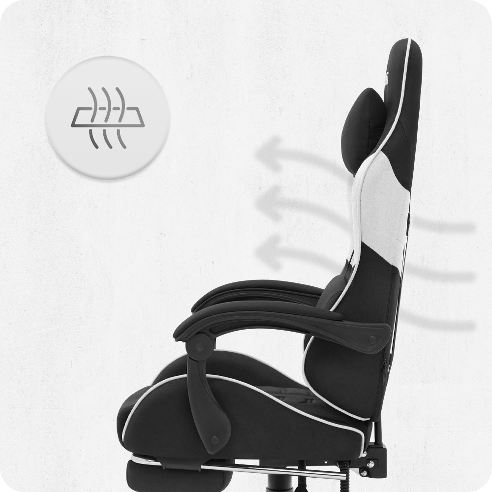 Ігрове крісло Cabro C501 чорно-біле тканина — це ергономічне комп’ютерне крісло, створене для максимального комфорту під час ігор, роботи або навчання. Завдяки дихаючій тканинній оббивці, регульованій спинці з нахилом до 145° та зручному м’якому сидінню крісло забезпечує правильну підтримку спини навіть під час тривалого використання.
