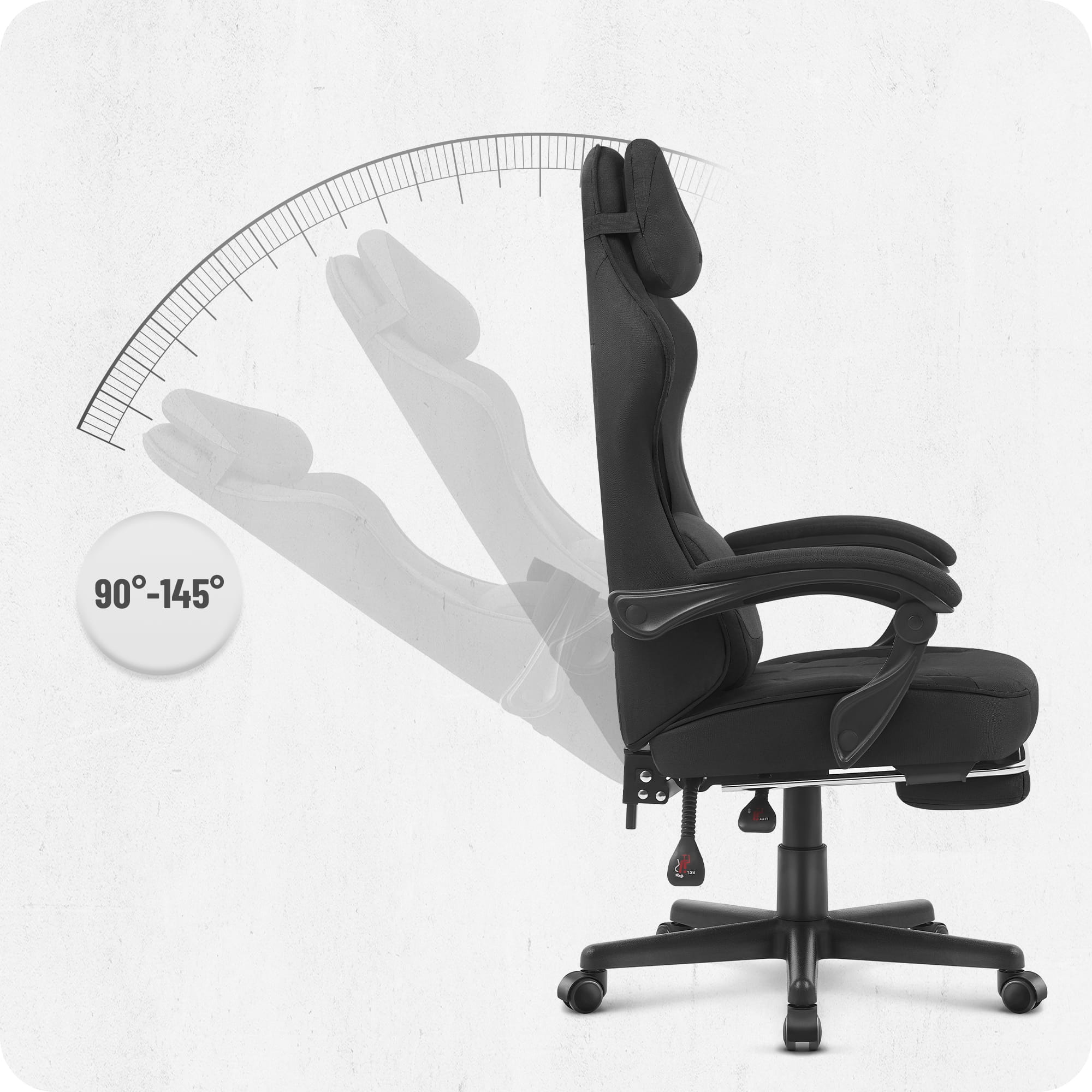 Крісло оснащене механізмом регулювання нахилу спинки від 90° до 145°, що дозволяє легко адаптувати положення для роботи, гри або відпочинку. Ви можете сидіти прямо під час роботи або повністю розслабитися, відкинувши спинку назад.