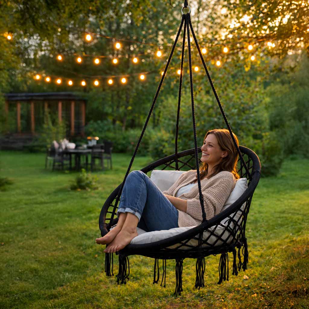 Крісло-гойдалка LUARO KX7630 BLACK ідеально підходить для сімей з дітьми, любителів затишку, а також для тих, хто шукає стильне підвісне крісло для релаксу. Це універсальний варіант як для домашнього використання, так і для облаштування зони відпочинку на свіжому повітрі.