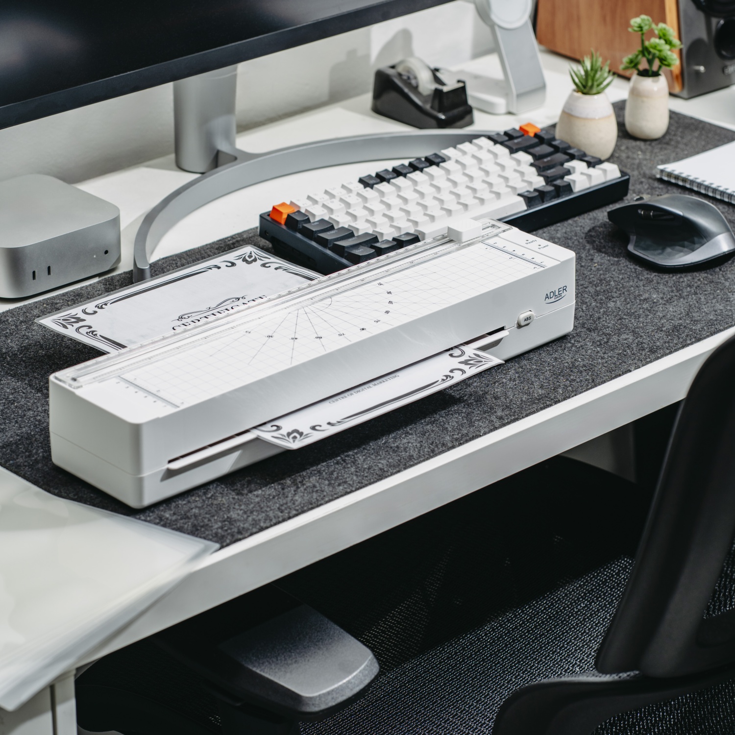 Ламінатор A3 Adler AD 1042 White: Гаряче ламінування з вбудованим тримером