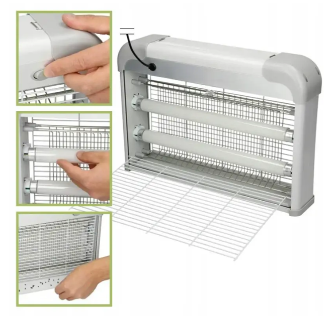 УФ лампа для комах випромінює спеціальне ультрафіолетове світло, яке приваблює комах. Після контакту з внутрішньою електричною сіткою комахи миттєво знищуються. Такий метод є одним із найефективніших і екологічно чистих.