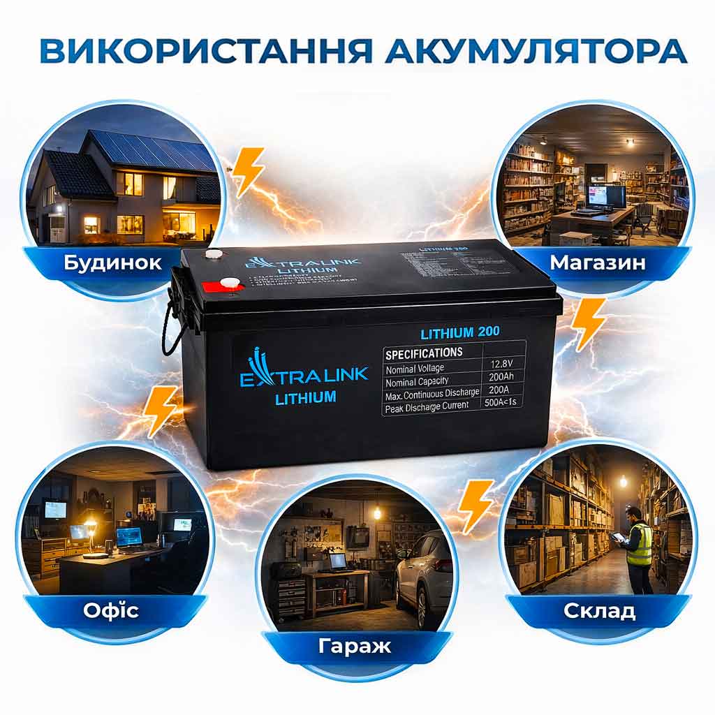 Де використовується LiFePO4 акумулятор Extralink 12.8V 200Ah