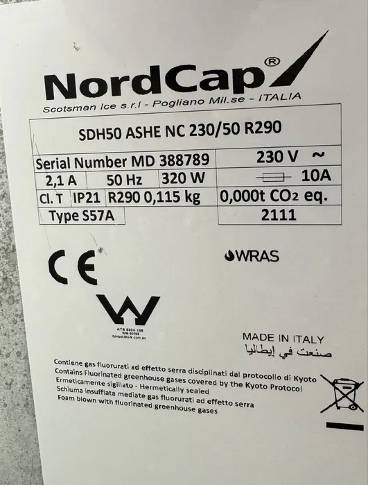 - Якість від Італії: Надійний льодогенератор NordCap SDN 45, аналогічний моделям Simag та Brema, забезпечує довговічність та гігієнічність.