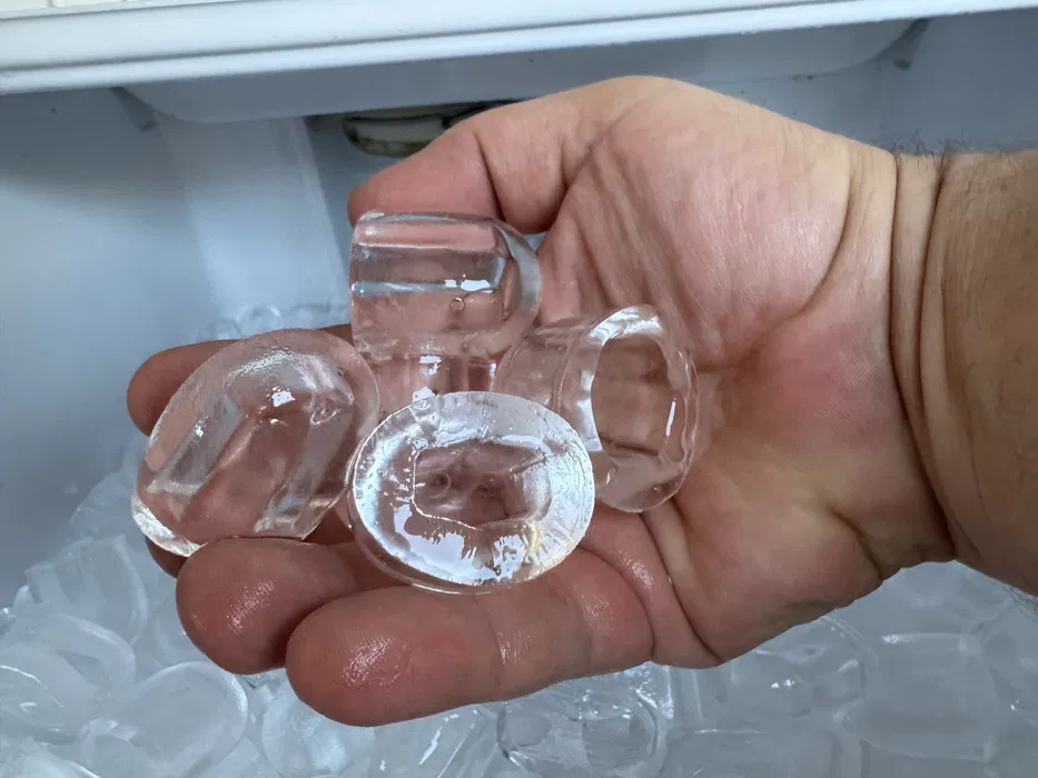 - Запуск: Увімкніть прилад, заповніть бункер водою та оберіть форму льоду (стаканчик чи пальчик).