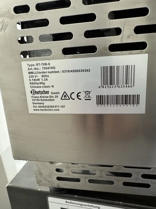 - Розпакуйте настільну холодильну вітрину Bartscher RT 78B 8 та перевірте комплектацію: корпус, полиці, кабель живлення.