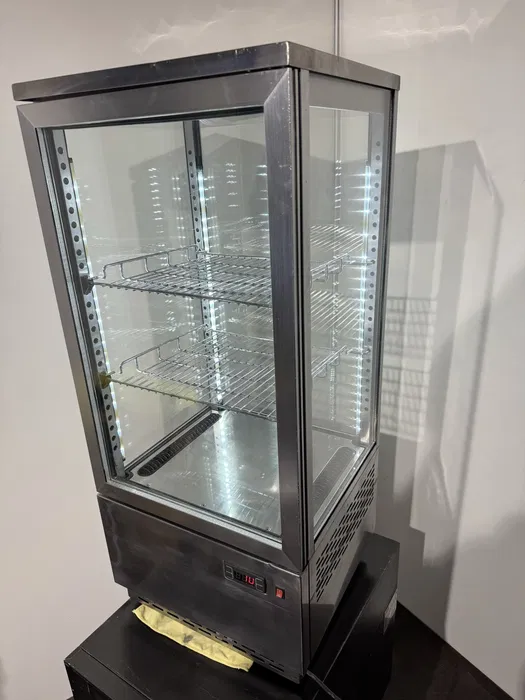 - Яскрава демонстрація: Діодна LED-підсвітка підкреслює свіжість продуктів, привертаючи увагу покупців через чотири скляні сторони.