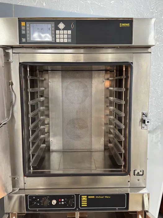 Оберіть німецьку конвекційну піч Miwe для стабільної роботи пекарні. Цей пароконвектомат б/в поєднує надійність і ефективність, ідеальний для малого та середнього виробництва.