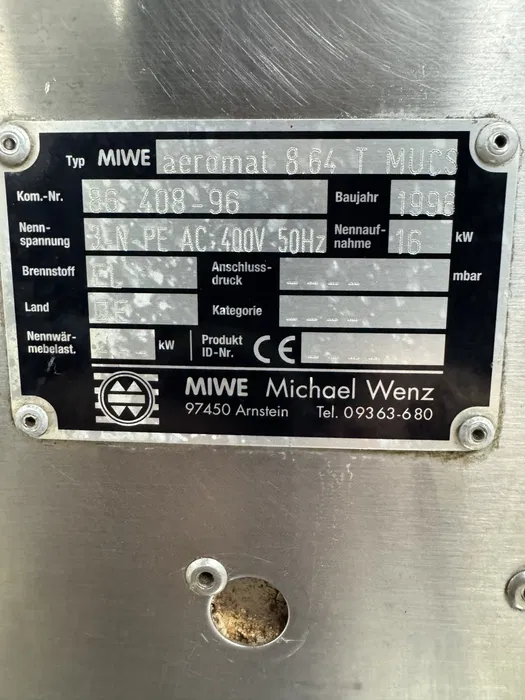 Ось детальні специфікації Miwe aeromat 8.64 T MUCS для перевірки сумісності з вашим обладнанням.