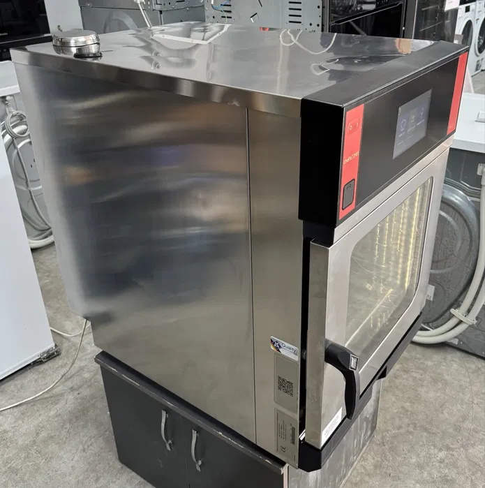Пароконвектомат MKN SpaceCombi SKECOD610TG20131 – компактна конвекційна піч 2020 року випуску шириною 55 см з потужністю 7,8 кВт. Ідеальна для професійних кухонь: 6 GN 1/1 вставок, MagicPilot керування, autoChef з 250+ програмами, WaveClean очищення. Режими: пароваріння, гаряче повітря, Delta-T. Стан: відмінний.