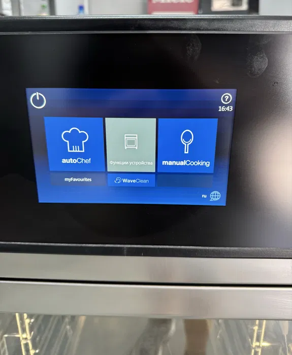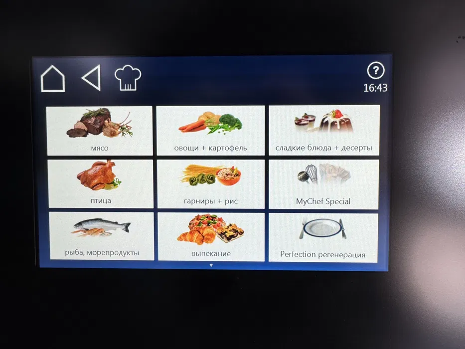 - Оберіть режим: На сенсорному екрані виберіть “Manual cooking” для ручного керування або “Automatic cooking” для autoChef-програм, потім тип приготування (пароваріння, гаряче повітря тощо).