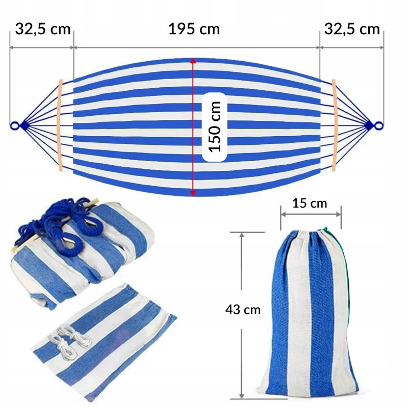 - Великий гамак для 2 осіб – комфортний простір для відпочинку удвох.