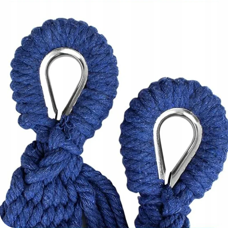 У комплект входять монтажні мотузки та зручна сумка для транспортування, що дозволяє легко брати гамак із собою на природу, на пляж або у подорож. Міцні канати, посилені металеві кріплення та якісна тканина забезпечують довговічність і безпечний відпочинок.