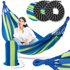 Зручний та просторий гамак забезпечує ідеальний відпочинок для двох осіб, ідеально підходить для саду, тераси або кемпінгу.