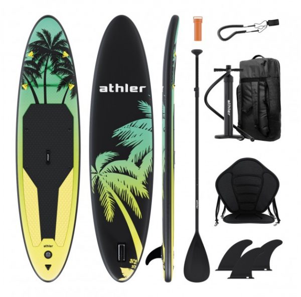 - ➡️ Легка та зручна для транспортування! Незважаючи на великі розміри, дошка надлегка — виготовлена з сучасної двошарової ПВХ- технології , що робить її на 35% легшою за традиційні дошки такого розміру. Після здування вона складається до компактного розміру та легко поміщається в транспортний рюкзак, що входить до комплекту.