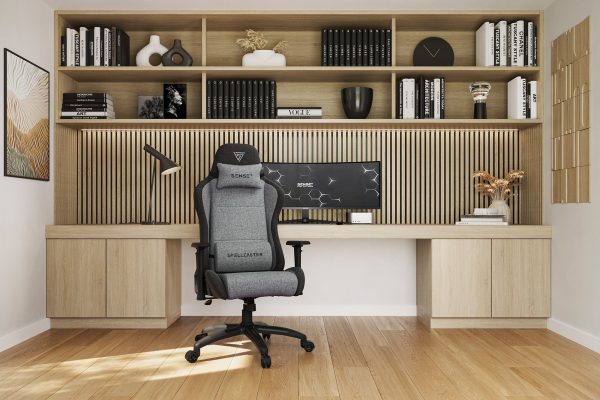 Геймерське крісло SENSE7 Spellcaster Fuku PU + алькантара нахил 90°–160° чорно-сіре